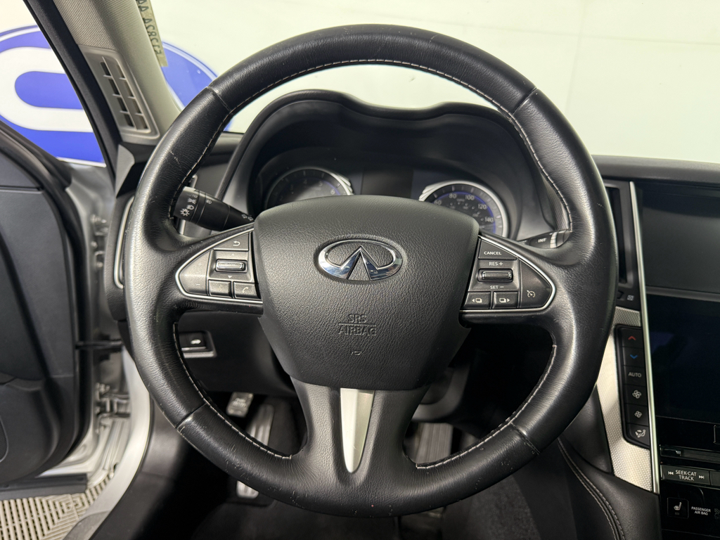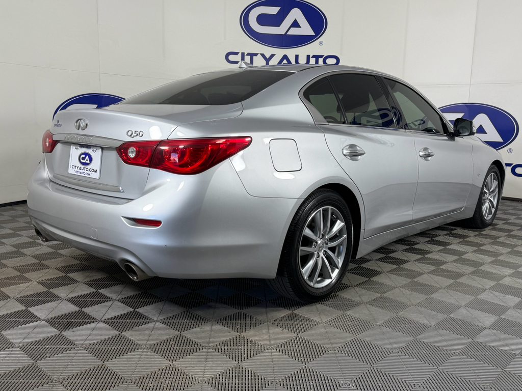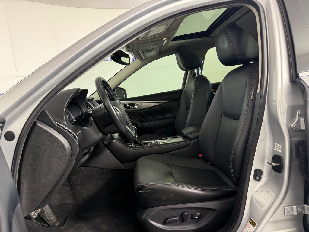 Bluetooth technology is built into this unit, keeping your hands on the steering wheel and your focus on the road. You'll never again be lost in a crowded city or a country region with the navigation system on this vehicle. The leather seats are soft and supportive on this 2015 INFINITI Q50 . The INFINITI Q50 has a clean CARFAX vehicle history report. This model keeps you comfortable with Auto Climate. Engulf yourself with the crystal clear sound of a BOSE sound system in this model. Protect this 2015 INFINITI Q50 from unwanted accidents with a cutting edge backup camera system. It has gone through a stringent manufacturer pre-owned certification process, including a meticulous mechanical and reconditioning processes. Take the stress out of car buying with this certified pre-owned. This vehicle has a V6, 3.7L high output engine. Maintaining a stable interior temperature in this vehicle is easy with the climate control system.
