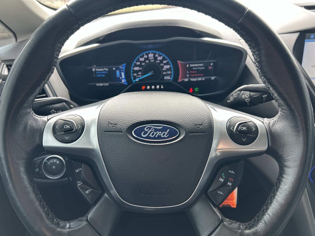 Bluetooth technology is built into this Ford C-Max Energi, keeping your hands on the steering wheel and your focus on the road. See what's behind you with the back up camera on this vehicle. This large car keeps you comfortable with Auto Climate. You'll never again be lost in a crowded city or a country region with the navigation system on the vehicle. The rear parking assist technology on the vehicle will put you at ease when reversing. The system alerts you as you get closer to an obstruction. It has a clean AutoCheck report, ensuring its impeccable vehicle history. This model has a 4 Cyl, 2.0L high output engine. Set the temperature exactly where you are most comfortable in this Ford C-Max Energi. The fan speed and temperature will automatically adjust to maintain your preferred zone climate. This vehicle is front wheel drive. This Ford C-Max Energi shines with an exquisite metallic silver exterior finish.
