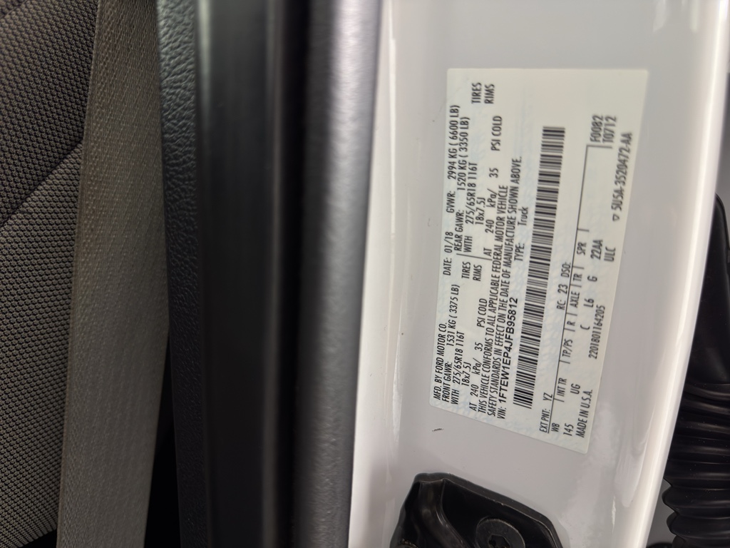 Bluetooth technology is built into this vehicle, keeping your hands on the steering wheel and your focus on the road. This unit is a manufacturer certified pre-owned vehicle. It is equipped with the latest generation of XM/Sirius Radio. Protect this vehicle from unwanted accidents with a cutting edge backup camera system. Our dealership has already run the CARFAX report and it is clean. A clean CARFAX is a great asset for resale value in the future. When you encounter slick or muddy roads, you can engage the four wheel drive on this 1/2 ton pickup and drive with confidence. The gas and brake pedals adjust allowing you to fine-tune them for personal fit and comfort. This 2018 Ford F-150 shines with clean polished lines coated with an elegant white finish. The Ford F-150 has a V6, 2.7L high output engine. Greater towing safety becomes standard with the installed trailer brake.