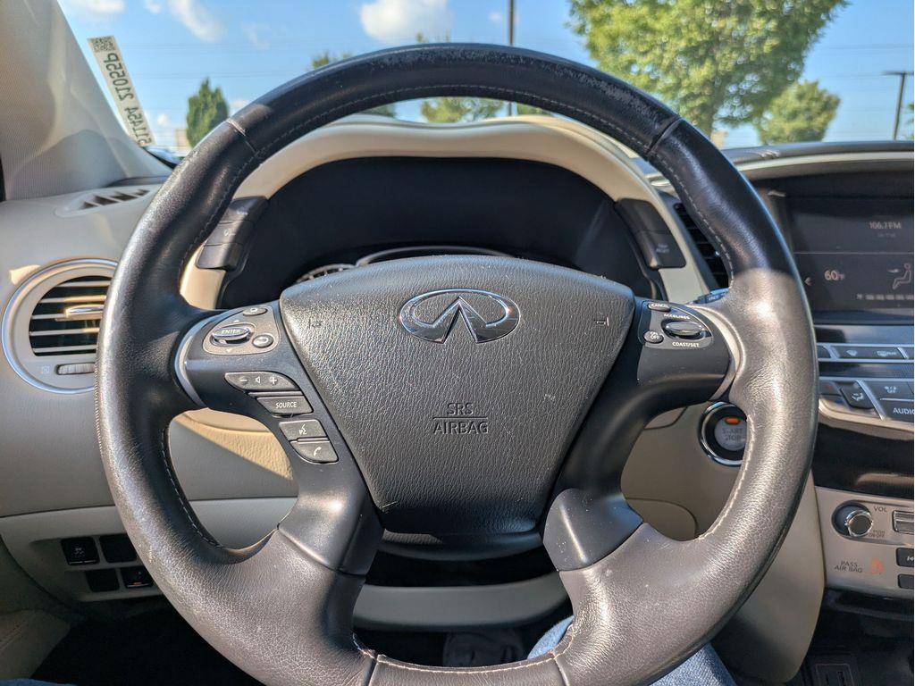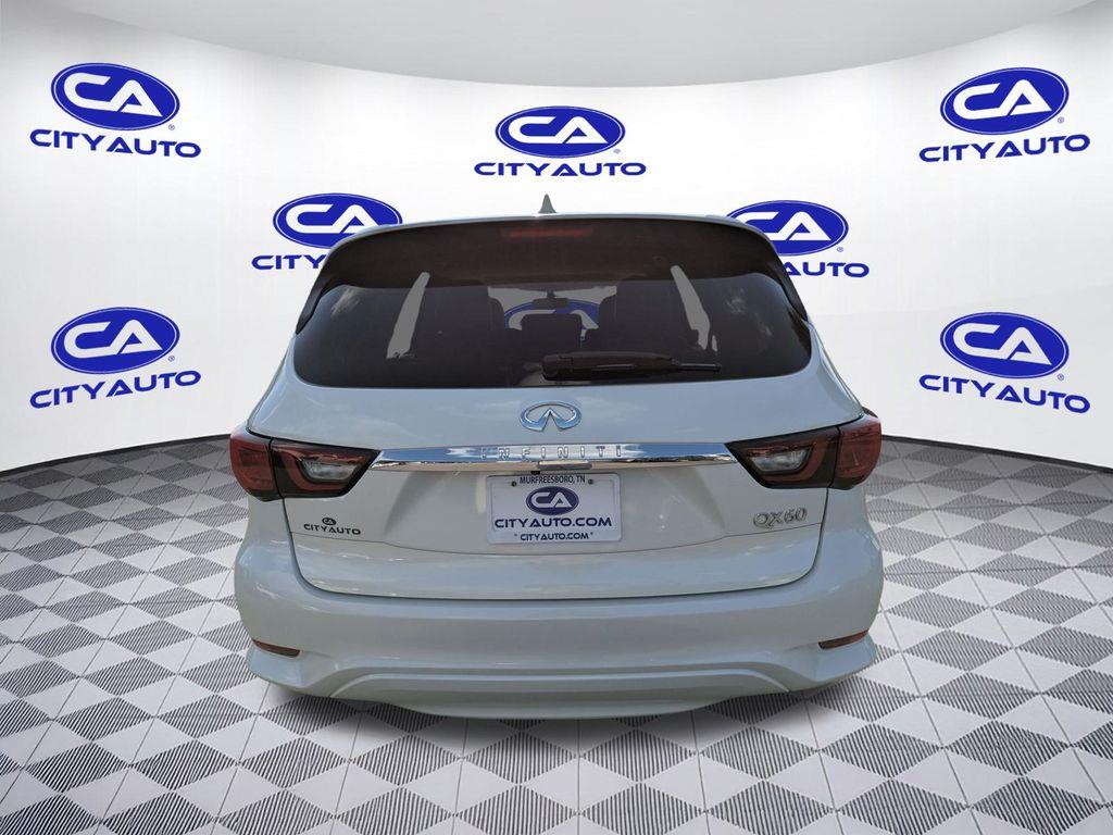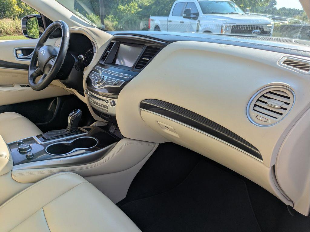The leather seats in the INFINITI QX60 are a must for buyers looking for comfort, durability, and style. This model offers Automatic Climate Control for personalized comfort. This vehicle features a hands-free Bluetooth phone system. Protect the INFINITI QX60 from unwanted accidents with a cutting edge backup camera system. This model is a manufacturer certified pre-owned vehicle. The vehicle is equipped with the latest generation of XM/Sirius Radio. Enjoy the convenience of the power liftgate on this unit. Set the temperature exactly where you are most comfortable in this vehicle. The fan speed and temperature will automatically adjust to maintain your preferred zone climate. This model has a V6, 3.5L high output engine. It is front wheel drive. This INFINITI QX60 embodies class and sophistication with its refined white exterior. Electronic Stability Control is one of many advanced safety features on this model. This 2019 INFINITI QX60 features cruise control for long trips.
