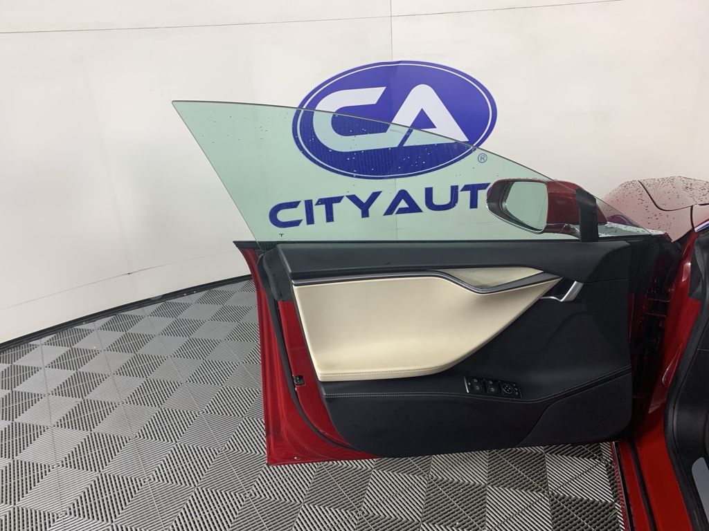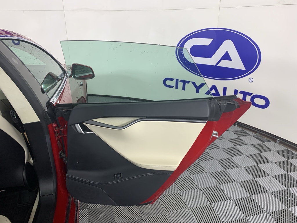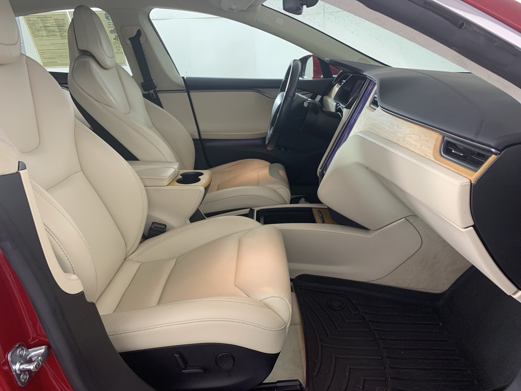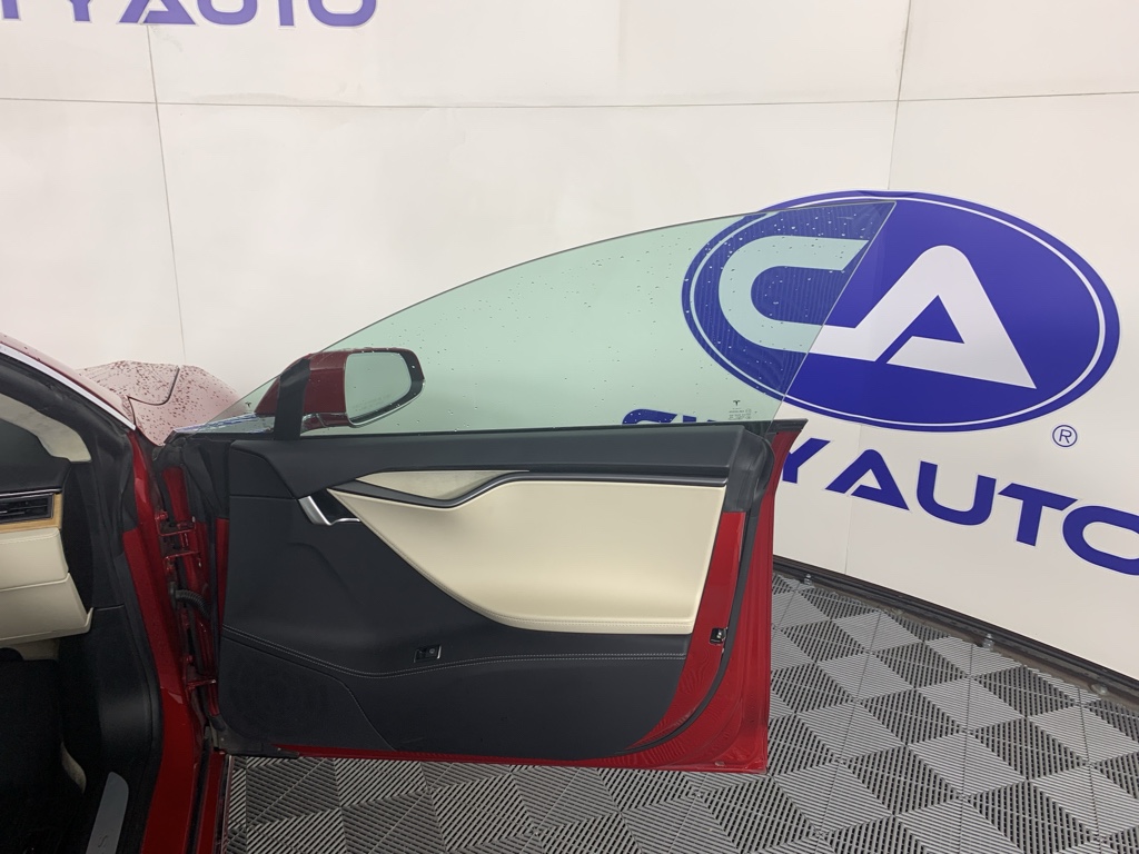 Conquer any rainy, snowy, or icy road conditions this winter with the all wheel drive system on this model. Our dealership has already run the CARFAX report and it is clean. A clean CARFAX is a great asset for resale value in the future. This large car is a manufacturer certified pre-owned vehicle. This unit has a Electric Motor high output engine. Relax on the road in this the Tesla Model S. This large car is great for more passenger room and comfort. The luggage space is sure to fit all your bags. This unit excites both driver and bystanders with a polished red exterior with racy lines.