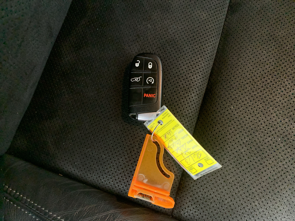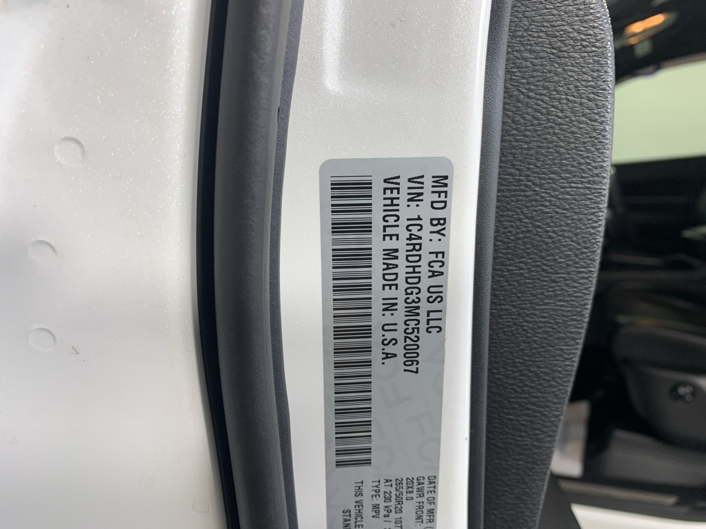 Blacktop Package: GT Gloss Black Badging; 20" X 8.0" Black Noise Aluminum Wheels; Satin Black Dodge Tail Lamp Badge; Gloss Black Badges; Gloss Black Exterior Mirrors. Quick Order Package 2BE GT Plus: Power 6x9 Multi-Function Foldaway Mirrors; Tungsten Accent Stitching; Remote Start System; 180 Amp Alternator; Heated Front Seats; Power 8-Way Driver Memory 6-Way Passenger Seats; Power Driver/passenger 4-Way Lumbar Adjust; Exterior Mirrors with Supplemental Signals; Dual Remote USB Port - Charge Only; Leather Suede Bucket Seats; 115V Auxiliary Power Outlet; Universal Garage Door Opener; Exterior Mirrors with Memory; Heated Second Row Seats; Heated Steering Wheel; Power Liftgate; Security Alarm; Sun Visors with Illuminated Vanity Mirrors; Radio/driver Seat/mirrors Memory. 2nd Row Fold/tumble Captain Chairs. Uconnect 5 Nav with 10.1" Display Radio. Vice White. Blind Spot and Cross Path Detection. **Equipment listed is based on original vehicle build and subject to change. Please confirm the accuracy of the included equipment by calling the dealer prior to purchase.**