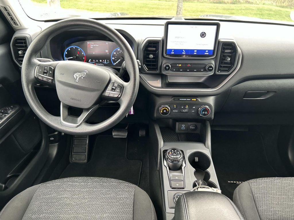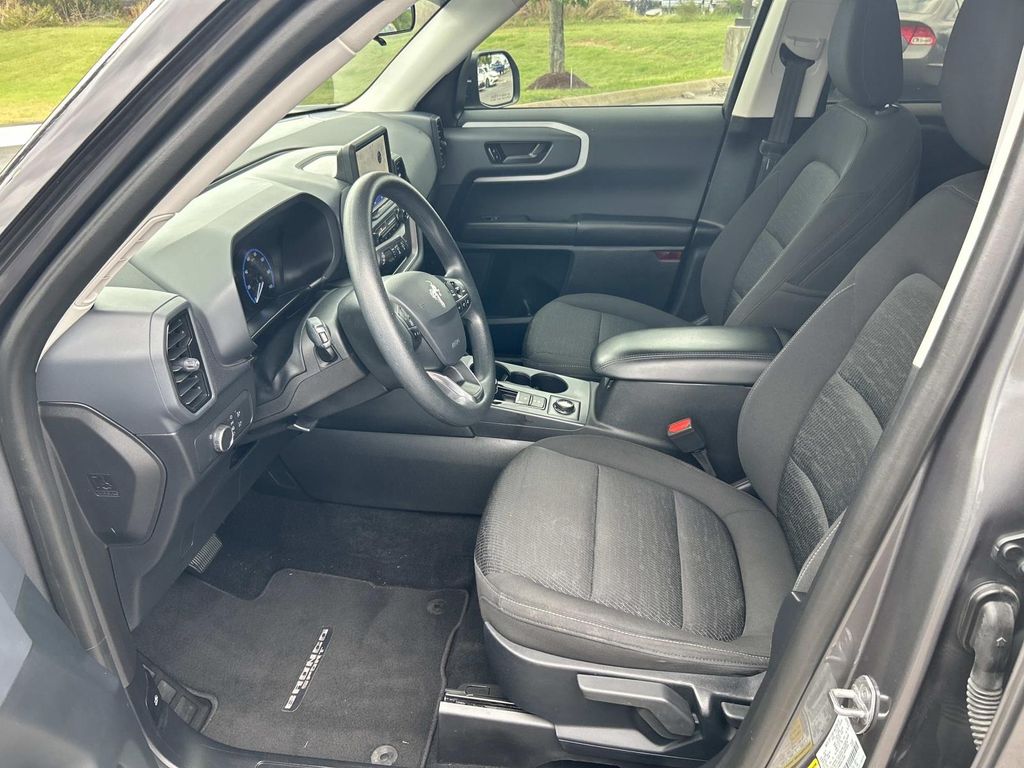 It has a clean CARFAX vehicle history report. It features a hands-free Bluetooth phone system. This Ford Bronco Sport has gone through a stringent manufacturer pre-owned certification process, including a meticulous mechanical and reconditioning processes. Take the stress out of car buying with this certified pre-owned. Apple CarPlay: Seamless smartphone integration for it - stay connected and entertained on the go! This 2021 Ford Bronco Sport 's Cross-Traffic Alert: Safeguarding you from unexpected traffic when reversing. This mid-size suv offers Android Auto for seamless smartphone integration. Start this Ford Bronco Sport from inside with remote start. See what's behind you with the back up camera on it. When you encounter slick or muddy roads, you can engage the four wheel drive on this unit and drive with confidence. This unit projects refinement with a racy metallic gray exterior. This mid-size suv has a 3 Cyl, 1.5L high output engine. Enjoy the tried and true gasoline engine in this Ford Bronco Sport.