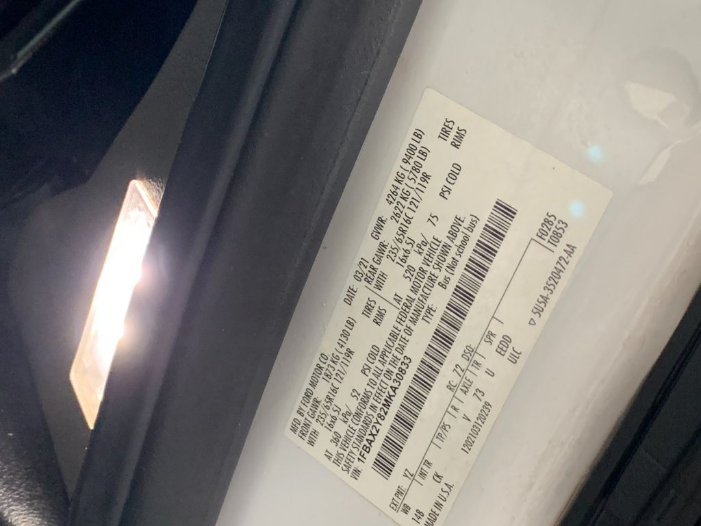 Order Code 302A: Cloth Front Bucket Seats; AM/FM Stereo with SYNC 3; 10-Speed Automatic Transmission with OD and SelectShift; 3.73 Axle Ratio; 3.5L PFDi V6 Flex-Fuel Engine; 235/65R16C 121/119 R AS BSW Tires; 16" Steel Wheels with Full Silver Cover; Dark Palazzo Gray Cloth Bucket Seats. 15-Passenger Seats. **Equipment listed is based on original vehicle build and subject to change. Please confirm the accuracy of the included equipment by calling the dealer prior to purchase.**