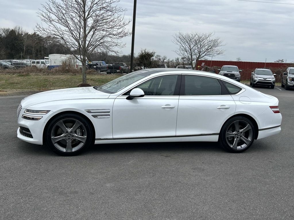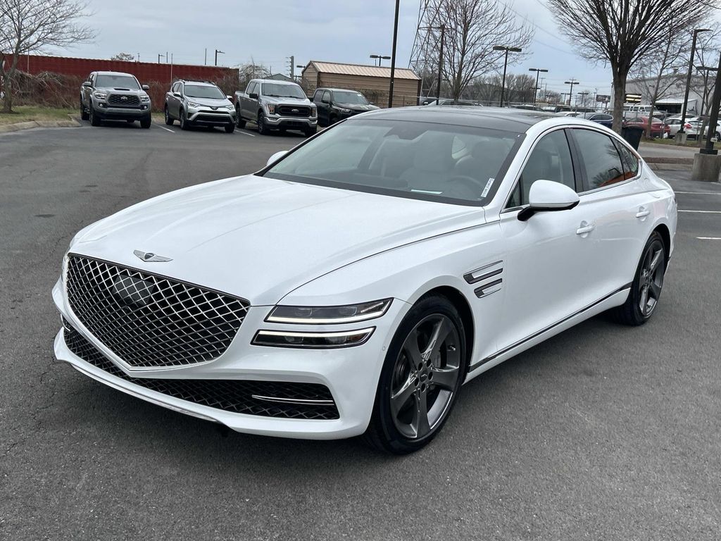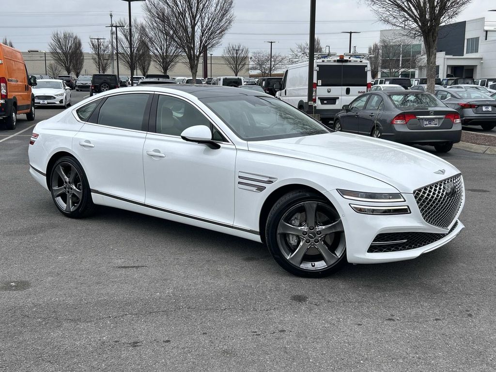 Discover exceptional value with this certified pre-owned 2021 Genesis G80 3.5T, now available in Murfreesboro, TN. This expertly maintained luxury sedan features a potent 3.5L V6 gasoline engine and rear-wheel drive, delivering a refined balance of performance and comfort. With just 29,270 miles, this Genesis G80 offers low mileage for a premium vehicle, providing years of reliable driving ahead. This Genesis G80 comes loaded with high-end amenities designed for convenience and connectivity. Standard features include Navigation to guide every trip, sumptuous Leather Seats for first-class comfort, a Back-Up Camera for confident parking, and seamless smartphone integration with Apple CarPlay and Android Auto. The well-appointed interior and advanced tech make daily commutes and long drives equally enjoyable. As a certified pre-owned vehicle, this Genesis has undergone a thorough inspection and reconditioning process to meet strict manufacturer standards, offering added peace of mind and enhanced resale value. Priced competitively, this Genesis G80 represents the best price in the area for a luxury sedan of this caliber—an outstanding opportunity for buyers seeking performance, prestige, and affordability. Visit our Murfreesboro, TN showroom to test drive this certified 2021 Genesis G80 3.5T with low miles and secure a top-tier luxury vehicle at an unbeatable price. Financing and extended warranty options are available.