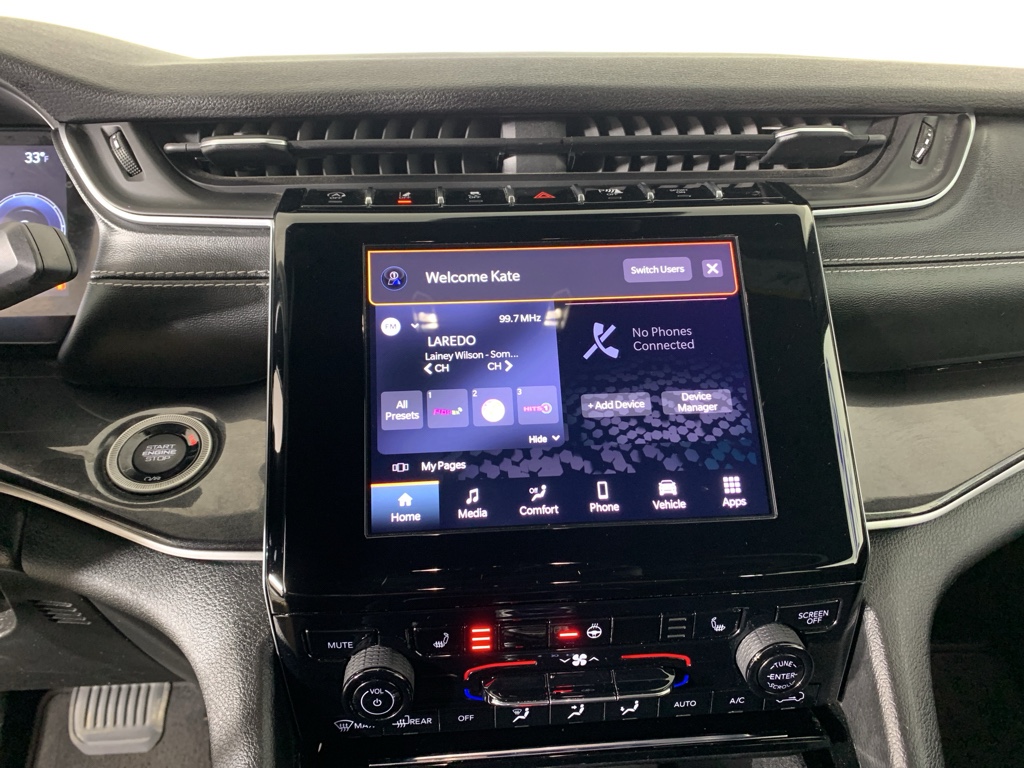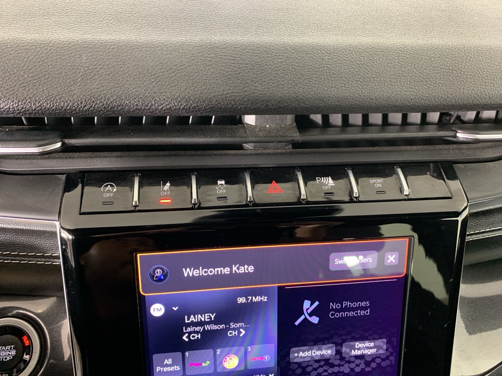 Quick Order Package 22B Altitude: Leather Trimmed Bucket Seats; Selectable Tire Fill Alert; Remote Start System; Rain Sensitive Windshield Wipers; Wireless Charging Pad; Heated Front Seats; Altitude Appearance Package; Black Headliner; Delete Laredo Badge; Leather Wrapped Steering Wheel; 3rd Row Charge-Only USB Ports; 115V Auxiliary Power Outlet; 20" X 8.5" Gloss Black Painted Aluminum Wheels; Gloss Black Exterior Accents; Heated Steering Wheel; 265/50R20 BSW A/S LRR Tires; Molded in Color Black/gloss Black Roof Rails; Power Liftgate; Bridgestone Brand Tires **Equipment listed is based on original vehicle build and subject to change. Please confirm the accuracy of the included equipment by calling the dealer prior to purchase.**