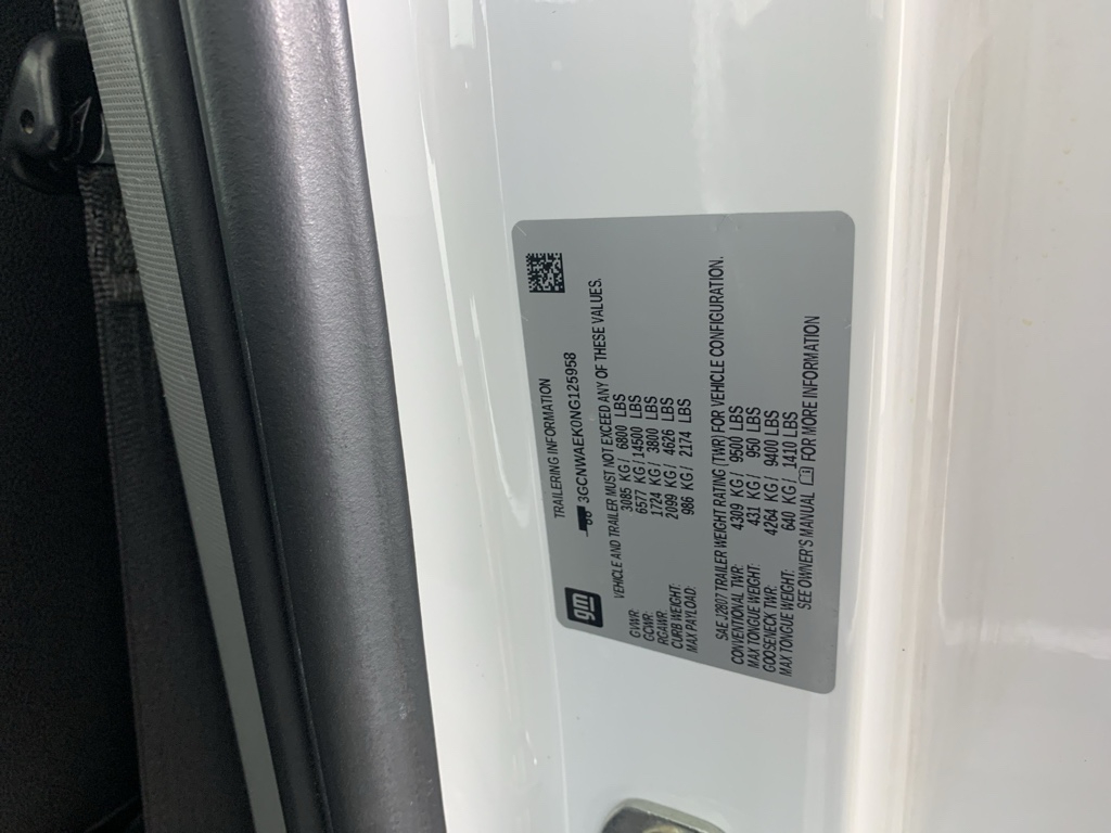 WT Convenience Package. WT Value Package: Trailering Package. Work Truck Package: Skid Plates; Heavy-Duty Air Filter. Safety Confidence Package: Forward Collision Alert; 4.2" Diagonal Color Display Driver Info Center; Front Pedestrian Braking; Automatic Emergency Braking; Steering Wheel Audio Controls; Electronic Cruise Control. Preferred Equipment Group 1WT: Vinyl Seat Trim; Bluetooth For Phone; Black (semi-Gloss) Front Bumper; 17" X 8" Ultra Silver Painted Steel Wheels; Solar Absorbing Tinted Glass; Black Manual Outside Mirrors; Manual Tilt Wheel Steering Column; Black Grille; Black (semi-Gloss) Rear Bumper; 40/20/40 Front Split Bench Seat; 3.5" Monochromatic Display Driver Info Center; Rubberized-Vinyl Floor Covering; Standard Tailgate; Manual Door Locks; 2.7L Turbo Engine; Locking Tailgate; Manual Windows. Multi-Flex Tailgate. Auto-Locking Rear Differential. Trailering Package. Electronic Cruise Control. Electric Rear-Window Defogger. 120-Volt Instrument Panel Power Outlet. 265/70R17 AT BW Tires. OnStar and Chevrolet Connected Services Capable. Skid Plates. SiriusXM Radio. Deep-Tinted Glass. **Equipment listed is based on original vehicle build and subject to change. Please confirm the accuracy of the included equipment by calling the dealer prior to purchase.**