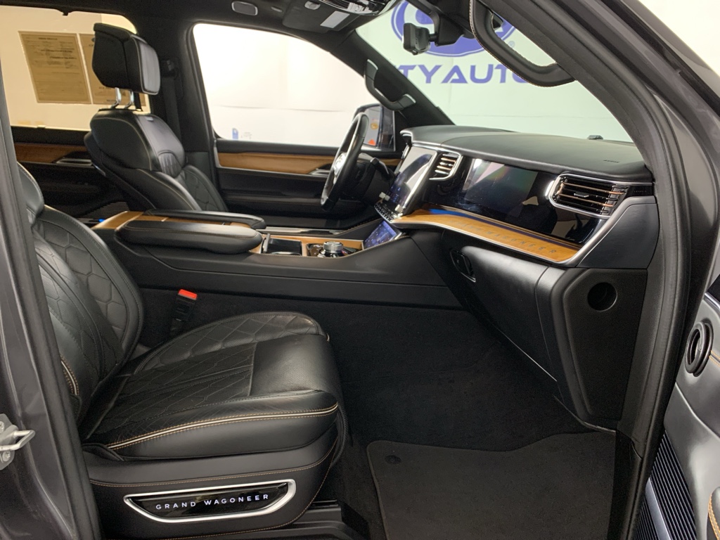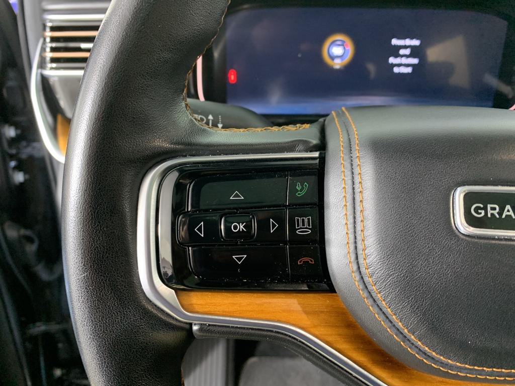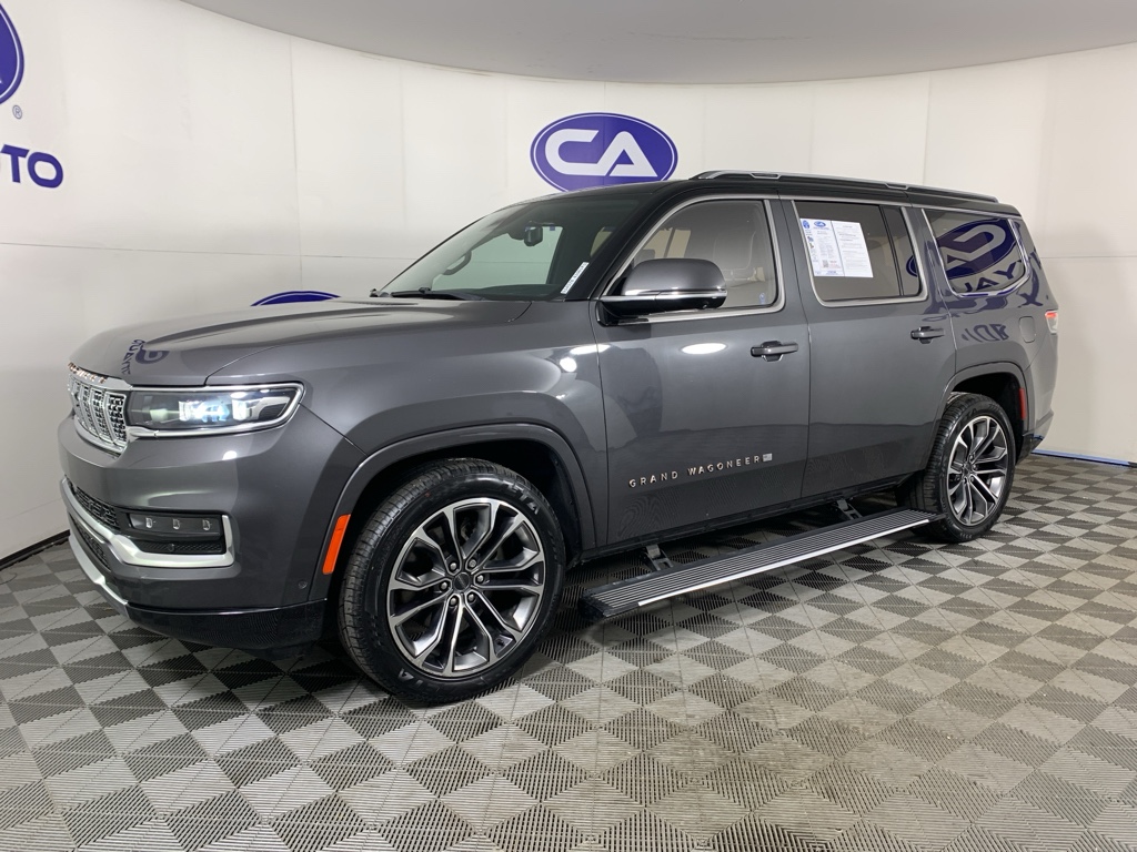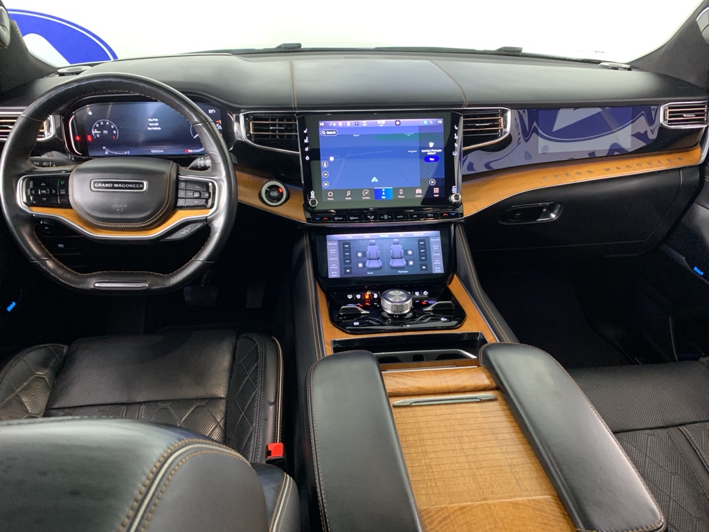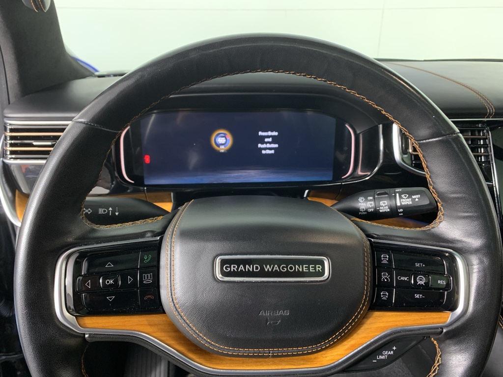 Bluetooth technology is built into this model, keeping your hands on the steering wheel and your focus on the road. Good News! This certified CARFAX 1-owner vehicle has only had one owner before you. This 2022 Jeep Grand Wagoneer has automated speed control that adjusts to maintain a safe following distance, enhancing highway driving convenience. The installed navigation system will keep you on the right path. Keep your hands warm all winter with a heated steering wheel in this 1/2 ton suv . This Jeep Grand Wagoneer has a clean CARFAX vehicle history report. This 1/2 ton suv is a manufacturer certified pre-owned vehicle. Never get into a cold vehicle again with the remote start feature on it. The leather seats in the vehicle are a must for buyers looking for comfort, durability, and style. See what's behind you with the back up camera on this 2022 Jeep Grand Wagoneer .