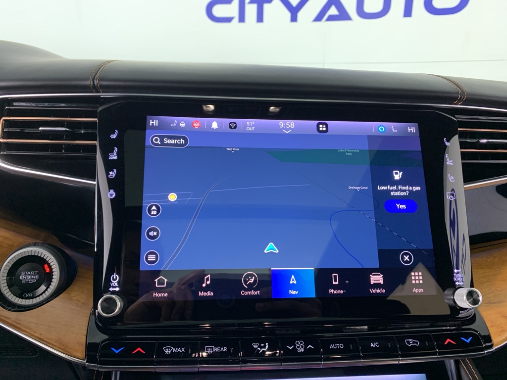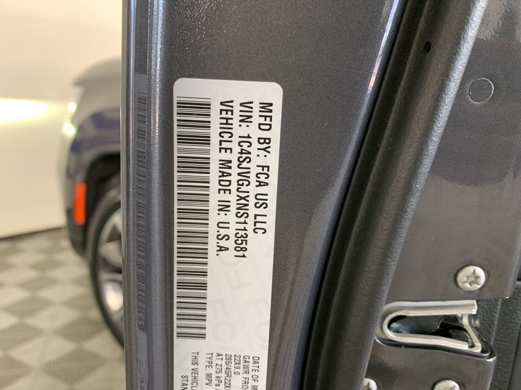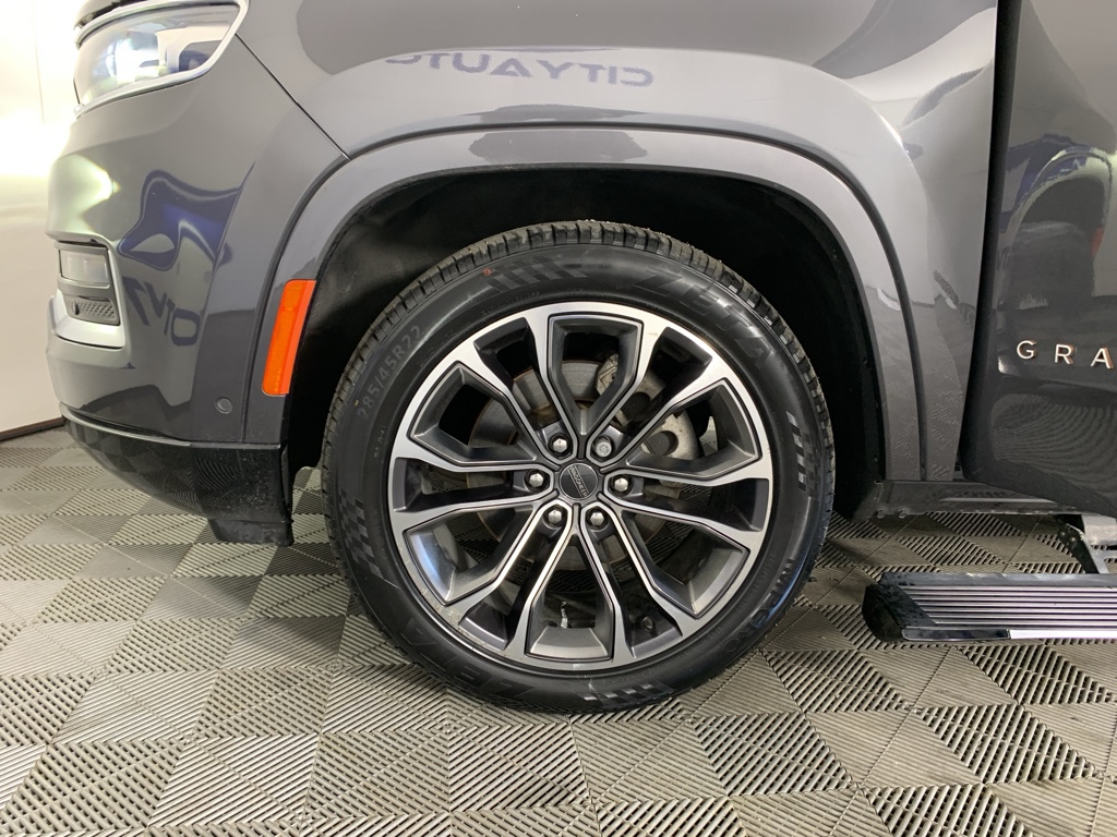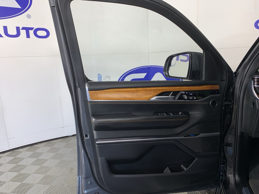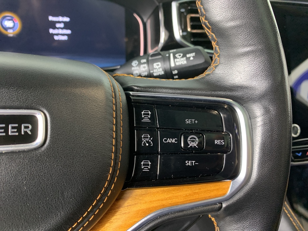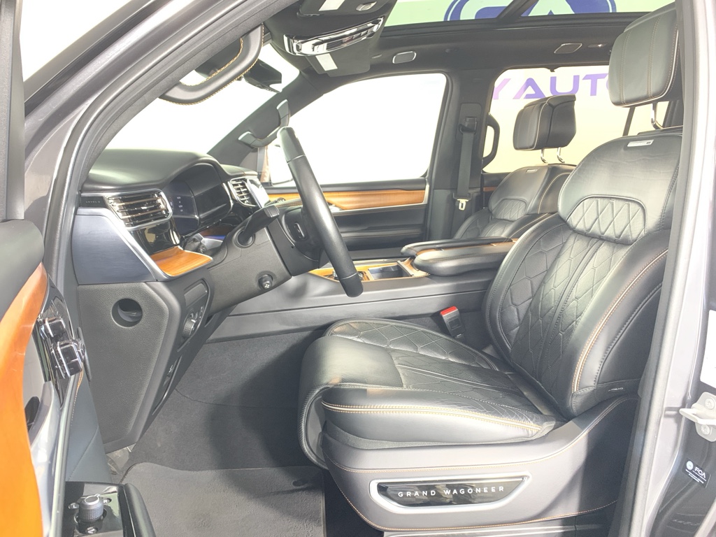 Bluetooth technology is built into this model, keeping your hands on the steering wheel and your focus on the road. Good News! This certified CARFAX 1-owner vehicle has only had one owner before you. This 2022 Jeep Grand Wagoneer has automated speed control that adjusts to maintain a safe following distance, enhancing highway driving convenience. The installed navigation system will keep you on the right path. Keep your hands warm all winter with a heated steering wheel in this 1/2 ton suv . This Jeep Grand Wagoneer has a clean CARFAX vehicle history report. This 1/2 ton suv is a manufacturer certified pre-owned vehicle. Never get into a cold vehicle again with the remote start feature on it. The leather seats in the vehicle are a must for buyers looking for comfort, durability, and style. See what's behind you with the back up camera on this 2022 Jeep Grand Wagoneer .