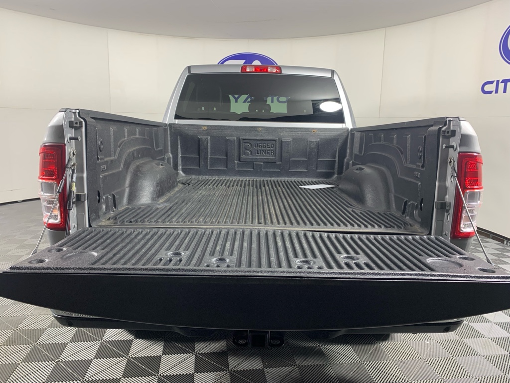 Quick Order Package 2GZ Big Horn. Level 1 Equipment Group: Locking Lower Glove Box; Rear View Auto Dim Mirror; Power Adjustable Pedals; Leather Wrapped Steering Wheel; Rear Dome with On/off Switch Lamp; Front Fog Lamps; Power Adjust/fold and Heated Black Tow Mirrors; Steering Wheel Mounted Audio Controls; Dual Glove Boxes; Glove Box Lamp; Footwell Courtesy Lamp; Universal Garage Door Opener; Power Folding Mirrors; Foam Bottle Insert (door Trim Panel); 18" X 8.0" Polished Aluminum Wheels; 2nd Row in Floor Storage Bins; Sun Visors with Illuminated Vanity Mirrors; Big Horn Instrument Panel Badge. Uconnect 5 Navigation Radio with 8.4" Display. Chrome Flat Cab-Length Side Steps. 18" X 8.0" Polished Aluminum Wheels. Anti-Spin Differential Rear Axle. Premium Cloth Bucket Seats. ParkSense Rear Park Assist System. Remote Start System. Billet Silver Metallic CC. Front Fog Lamps. Instrument Panel Mounted Auxiliary Switches. Tow Hooks. Clearance Lamps. **Equipment listed is based on original vehicle build and subject to change. Please confirm the accuracy of the included equipment by calling the dealer prior to purchase.**