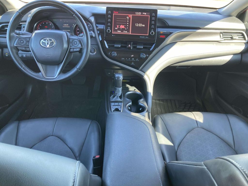 See what's behind you with the back up camera on it. Start this 2022 Toyota Camry from inside with remote start. This model is a manufacturer certified pre-owned vehicle. This model features a hands-free Bluetooth phone system. The leather seats in this 2022 Toyota Camry are a must for buyers looking for comfort, durability, and style. This mid-size car has a clean CARFAX vehicle history report. The vehicle offers Apple CarPlay for seamless connectivity. It comes equipped with Android Auto for seamless smartphone integration on the road. This model's Cross-Traffic Alert: Safeguarding you from unexpected traffic when reversing. This Toyota Camry enhances safety with a blind spot monitor, alerting drivers to potential dangers in adjacent lanes. This Toyota Camry offers Automatic Climate Control for personalized comfort. Front wheel drive on this vehicle gives you better traction and better fuel economy. This vehicle gleams with a flashy red exterior. This model has a 4 Cyl, 2.5L high output engine.