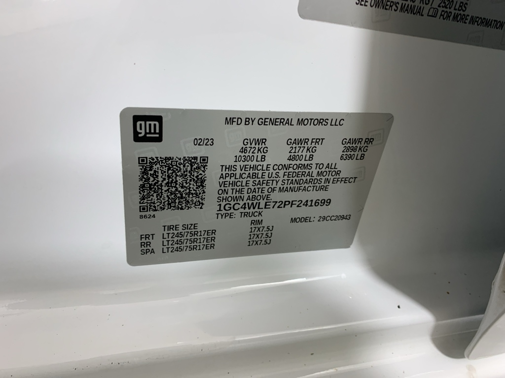 WT Convenience Package: Remote Keyless Entry; EZ Lift Power Lock and Release Tailgate; Deep-Tinted Glass; Heated Vertical Trailering Mirrors; Electric Rear-Window Defogger; Electronic Cruise Control with Set and Resume Speed. Preferred Equipment Group 1WT: Black Mirror Caps; Rear 60/40 Folding Bench Seat (folds Up); Vinyl Seat Trim; 17" Silver Painted Steel Wheels; Bluetooth For Phone; Black Front Bumper; Solar Absorbing Tinted Glass; 170 Amp Alternator; Power Rear Windows with Express Down; Manual Tailgate Function with No EZ Lift; Manual Tilt-Wheel Steering Column; Black Front Grille; Black Rear Bumper; High-Visibility Vertical Trailering Mirrors; Front 40/20/40 Split-Bench Seats; 3.5" Diagonal Monochromatic Display DIC; Rubberized-Vinyl Floor Covering; Standard Tailgate; Locking Tailgate; LT245/75R17E AS BW Tires. Spare LT245/75R17E AS BW Tire. Integrated Trailer Brake Controller. Electronic Cruise Control with Set and Resume Speed. Electric Rear-Window Defogger. Deep-Tinted Glass. Skid Plates. **Equipment listed is based on original vehicle build and subject to change. Please confirm the accuracy of the included equipment by calling the dealer prior to purchase.**