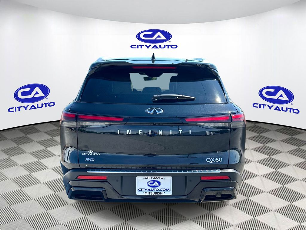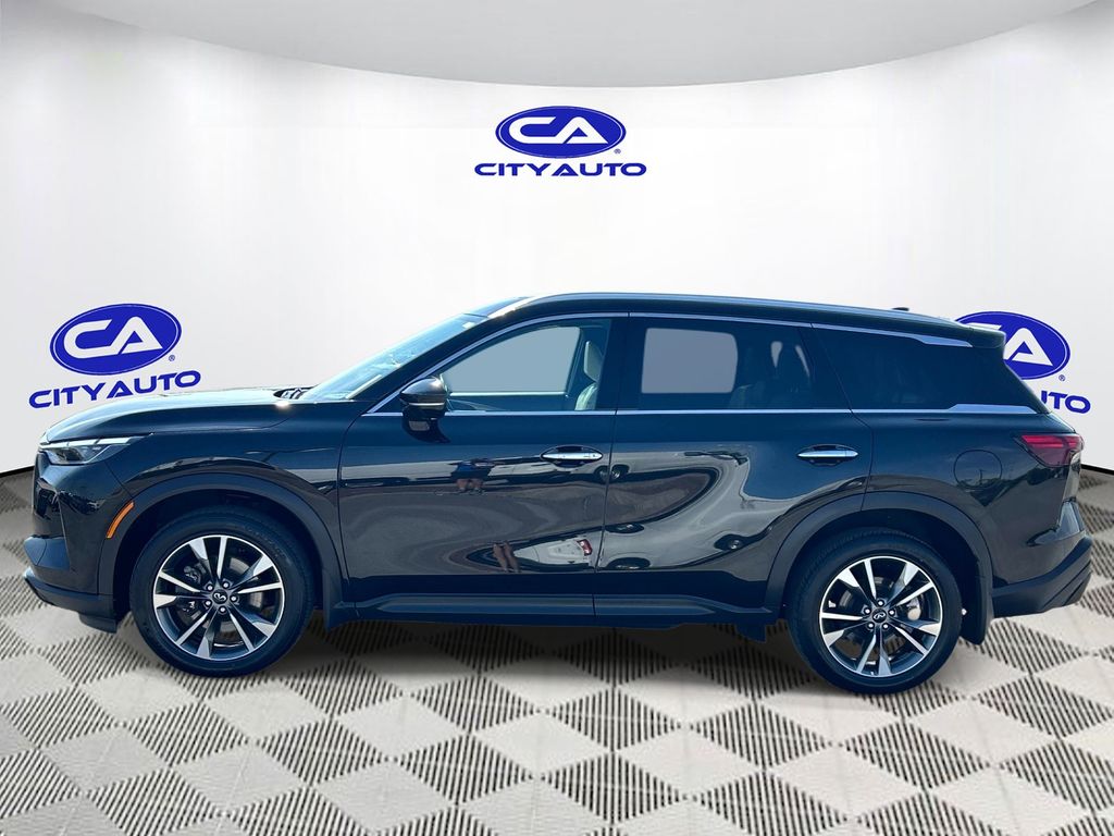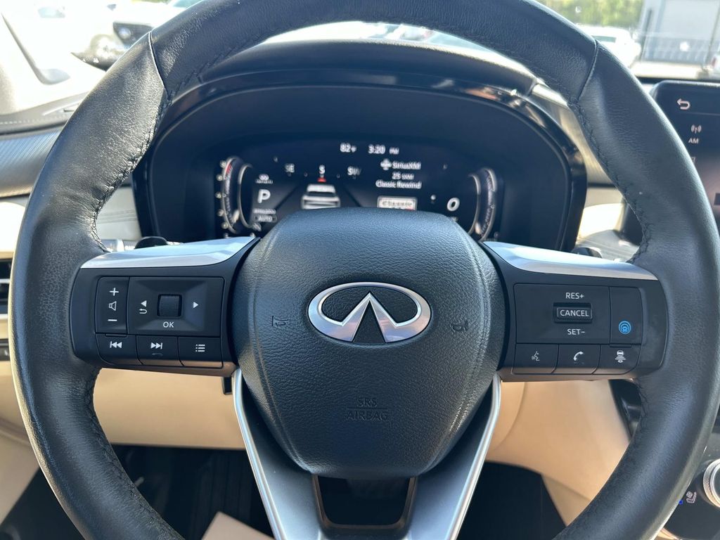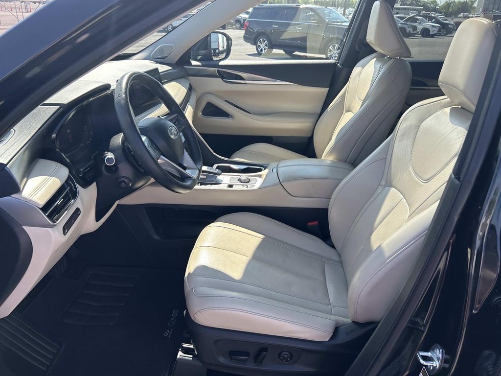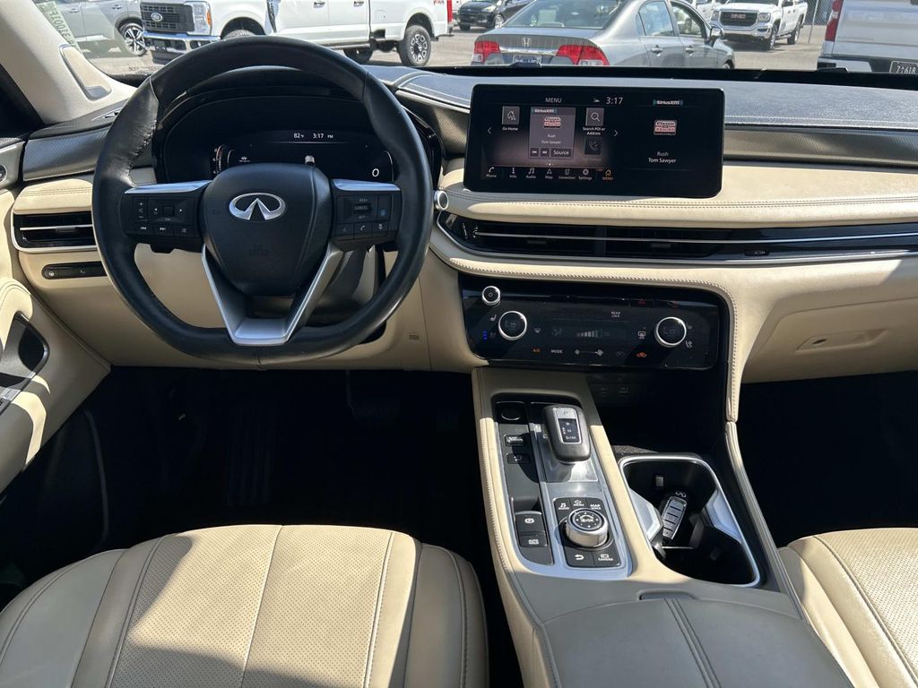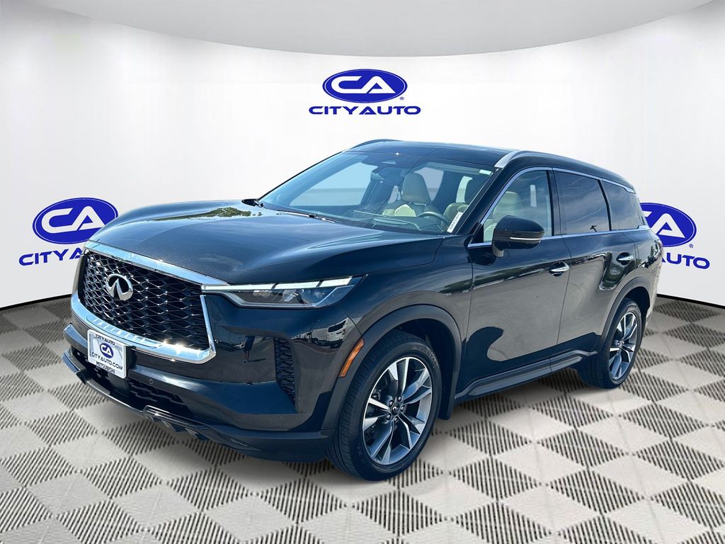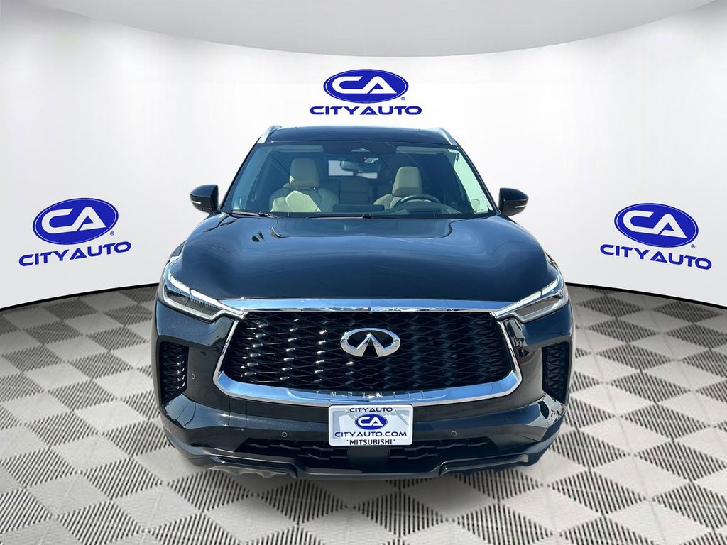This 2023 INFINITI QX60 has a clean CARFAX vehicle history report. This INFINITI QX60 features a high end BOSE stereo system. Keep your hands warm all winter with a heated steering wheel in this 2023 INFINITI QX60 . The INFINITI QX60 has gone through a stringent manufacturer pre-owned certification process, including a meticulous mechanical and reconditioning processes. Take the stress out of car buying with this certified pre-owned. You'll never again be lost in a crowded city or a country region with the navigation system on the INFINITI QX60. See what's behind you with the back up camera on this INFINITI QX60. It offers Apple CarPlay for seamless connectivity. The leather seats in this 1/2 ton suv are a must for buyers looking for comfort, durability, and style. This unit's Forward Collision Warning system alerts the driver to potential front-end collisions, enhancing safety. This vehicle is a certified CARFAX 1-owner.