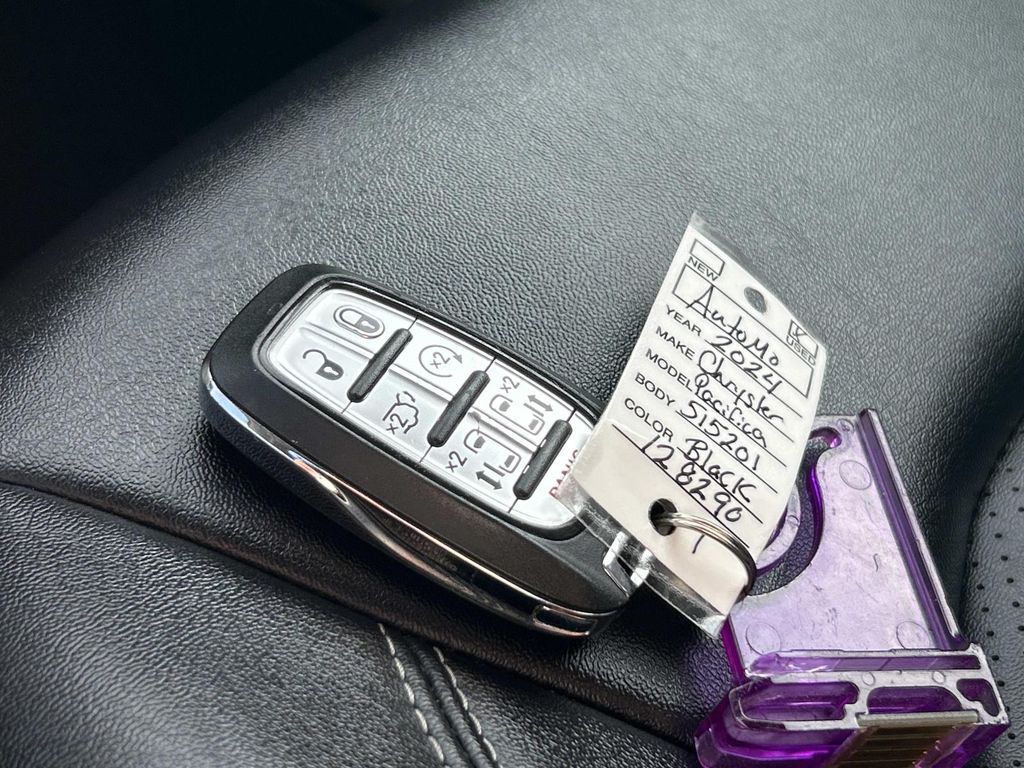 Anti-lock brakes are standard on this mini van. It has auto-adjust speed for safe following. This vehicle is accented with premium quality alloy wheels. This model comes equipped with Android Auto for seamless smartphone integration on the road. Apple CarPlay: Seamless smartphone integration for this unit - stay connected and entertained on the go! This Chrysler Pacifica keeps you comfortable with Auto Climate. The high efficiency automatic transmission shifts smoothly and allows you to relax while driving. See what's behind you with the back up camera on it. The vehicle is painted with a sleek and sophisticated black color. This vehicle is a certified CARFAX 1-owner. This model has a clean CARFAX vehicle history report. This 2024 Chrysler Pacifica has gone through a stringent manufacturer pre-owned certification process, including a meticulous mechanical and reconditioning processes. Take the stress out of car buying with this certified pre-owned. Set the temperature exactly where you are most comfortable in this mini van. The fan speed and temperature will automatically adjust to maintain your preferred zone climate. Easily set your speed in the vehicle with a state of the art cruise control system. Increase or decrease velocity with the touch of a button. Electronic Stability Control is one of many advanced safety features on this mini van. This 2024 Chrysler Pacifica has a V6, 3.6L high output engine. Front and rear side curtain airbags are included on the vehicle. The fog lights cut through the weather so you can see what's ahead. This vehicle's Forward Collision Warning system alerts the driver to potential front-end collisions, enhancing safety. This mini van has front air bags that will protect you and your passenger in the event of an accident. This mini van is equipped with front side curtain airbags. This mini van is front wheel drive. Enjoy the tried and true gasoline engine in this model. Bluetooth technology is built into this Chrysler Pacifica, keeping your hands on the steering wheel and your focus on the road. Enjoy the heated seats in this Chrysler Pacifica you will never buy a vehicle without them. Everyone loves the comfort of having a warm seat on those cold winter days. Keep your hands warm all winter with a heated steering wheel in this model . Quickly unlock this Chrysler Pacifica with keyless entry. This Chrysler Pacifica's Lane Departure Warning keeps you safe by alerting you when you drift from your lane. The leather seats in this Chrysler Pacifica are a must for buyers looking for comfort, durability, and style. Help alleviate lower back pain with the driver seat lumbar support in this vehicle. Get the whole family to events in this minivan. Load groceries and much more with ease into this vehicle thanks to the power liftgate. This mini van comes with power adjustable seat to get your seat just right for you. Power seats are a must! The rear parking assist technology on this unit will put you at ease when reversing. The system alerts you as you get closer to an obstruction. Never get into a cold vehicle again with the remote start feature on this 2024 Chrysler Pacifica . The satellite radio system in this model gives you access to hundreds of nation-wide radio stations with a clear digital signal. This mini van has an adjustable telescoping wheel that allows you to achieve a perfect fit for your driving comfort. This mini van comes standard with a state of the art traction control system. This vehicle is equipped with the latest generation of XM/Sirius Radio.