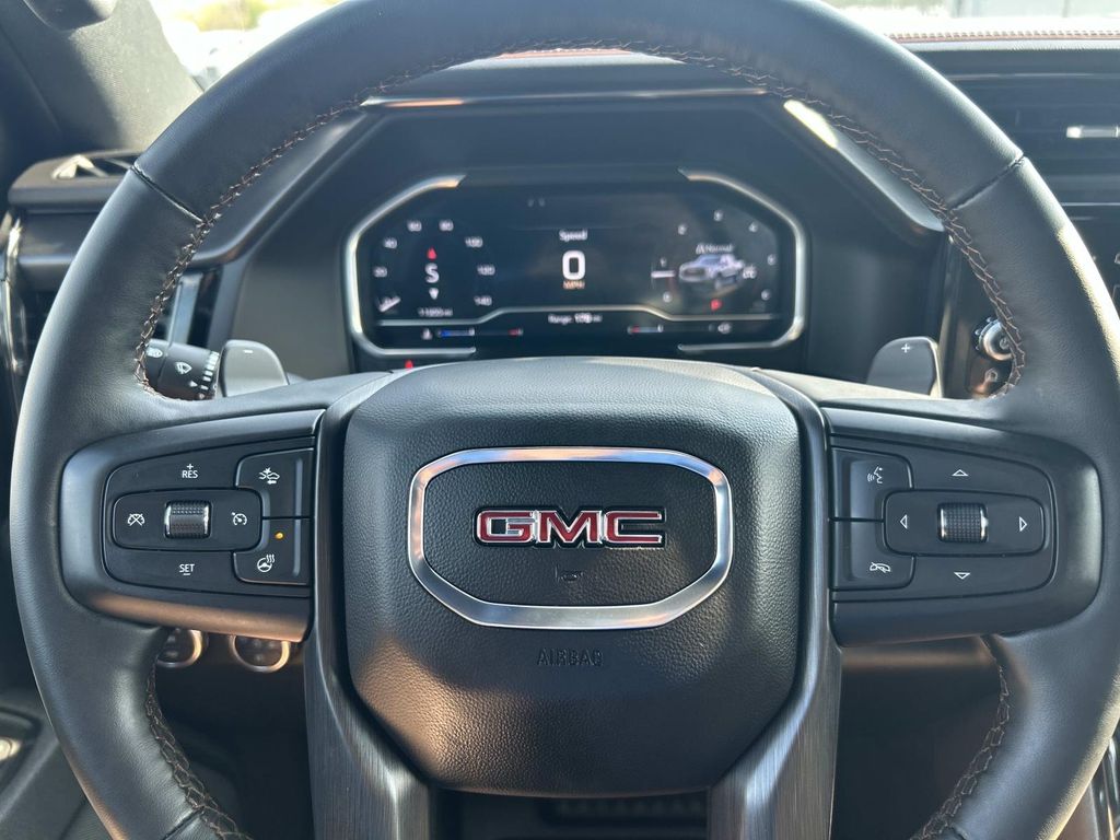 AT4 Premium Package: Off-Road High Clearance Step. Technology Package: Multicolor 15" Diagonal Head-Up Display; Bed View Camera; Rear Camera Mirror. Preferred Equipment Group 4SB: Trailer Side Blind Zone Alert; Ultrasonic Front and Rear Park Assist; Trailer Camera Provisions; Electric Rear-Window Defogger; Theft Deterrent System (unauthorized Entry); Black Chrome Header and Grille Insert Bars; Front Rain-Sensing Wipers; Heavy-Duty Air Filter; Skid Plates; 120-Volt Interior Power Outlet; Heated Driver and Front Outboard Passenger Seating; Wireless Charging; Front Premium Floor Liners with Removable Carpet Insert; Color-Keyed Carpeting Floor Covering; OnStar and GMC Connected Services Capable; Heated 2nd Row Outboard Seats; Power Front Passenger Windows with Express Up/down; Premium Bose 7-Speaker Sound System; Power Rear Windows with Express Down; Integrated Trailer Brake Controller; HD Surround Vision; Ventilated Driver and Front Passenger Seats; Power Rake and Telescoping Steering Column; Keyless Open and Start; Perimeter Lighting; Push Button Start; LED Cargo Area Lighting; Remote Vehicle Starter System; In-Vehicle Trailering System App; Hill Descent Control; 220 Amp Alternator; Floor-Mounted Center Console; Rear Cross Traffic Braking; GMC Pro Safety; Trailering Package; 2 USB Ports; 2 Charge/data USB Ports Inside Center Console; Off-Road Suspension; Steering Wheel Audio Controls; 2 type-C Charge-Only Rear USB Ports; GMC Connected Access Capable; 2-Speed Transfer Case; Deep-Tinted Glass; Spray-On Pickup Bedliner with AT4 Logo; Red Recovery Hooks; SiriusXM with 360L; Hitch View; Power Front Windows with Driver Express Up/down; Rear Pedestrian Detection; Wi-Fi Hotspot Capable; Rear Wheelhouse Liners; Auto-Locking Rear Differential; Power Door Locks. AT4 Preferred Package: Power Sliding Rear Window with Rear Defogger; Universal Home Remote. Off-Road High Clearance Step. 20" X 9" Machined Aluminum Wheels. Sterling Metallic. Front and Rear Black Molded Splash Guards. **Equipment listed is based on original vehicle build and subject to change. Please confirm the accuracy of the included equipment by calling the dealer prior to purchase.**