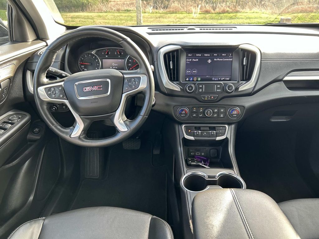 The leather seats in the vehicle are a must for buyers looking for comfort, durability, and style. This vehicle's Lane Departure Warning helps keep you in your lane. It is a manufacturer certified pre-owned vehicle. Bluetooth technology is built into it, keeping your hands on the steering wheel and your focus on the road. Start this vehicle from inside with remote start. Protect this 2024 GMC Terrain from unwanted accidents with a cutting edge backup camera system. It keeps you comfortable with Auto Climate. Keep your hands warm all winter with a heated steering wheel in this vehicle . Our dealership has already run the CARFAX report and it is clean. A clean CARFAX is a great asset for resale value in the future. This vehicle is a certified CARFAX 1-owner. The vehicle stays safely in its lane with Lane Keep Assist. Load groceries and much more with ease into this GMC Terrain thanks to the power liftgate.