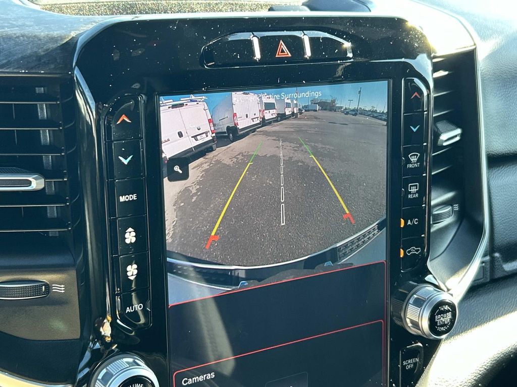 Quick Order Package 27Z Big Horn: Big Horn Badge. Off Road Group. Sport Appearance Package: Deluxe Cloth Bucket Seats; Exterior Mirrors with Supplemental Signals; Body Color Premium Power Mirrors; Body Color Door Handles; Exterior Mirrors Courtesy Lamps; RAM Grille Badge - Chrome; Exterior Mirrors with Heating Element; Auto Dim Exterior Driver Mirror; Body Color Exterior Mirrors; Grille Surround 1 Body Color Texture 2 Black; Black Interior Accents; Power-Folding Mirrors; Body Color Front Bumper; Convex Wide-Angle Exterior Mirror Insert; Body Color Rear Bumper with Step Pads. Big Horn Level B Equipment Group: Rear Window Defroster; ParkSense Front/rear Park Assist with Stop; Rear View Auto Dim Mirror; Power Adjustable Pedals; Rear Power Sliding Window; Rear Dome with On/off Switch Lamp; Front Fog Lamps; Glove Box Lamp; Media Hub with 2 Charge Only USBs; Exterior Mirrors with Heating Element; Power 8-Way Driver Seat; Auto Dim Exterior Driver Mirror; Heated Front Seats; Heated Steering Wheel; Class IV Receiver Hitch; Security Alarm; Black Premium Power Mirrors; Big Horn Instrument Panel Badge; Remote Start System; SiriusXM Satellite Radio; 400W Inverter; 9 Amplified Speakers with Subwoofer; Uconnect 5 Navigation with 12.0" Display Radio; Exterior Mirrors with Supplemental Signals; Exterior Mirrors Courtesy Lamps; Air Conditioning ATC with Dual Zone Control; 115V Auxiliary Power Outlet; Cluster 7.0" TFT Color Display; Universal Garage Door Opener; Power-Folding Mirrors; 2nd Row in Floor Storage Bins; Convex Wide-Angle Exterior Mirror Insert; Sun Visors with Illuminated Vanity Mirrors; LED Footwell Lighting; Power 2-Way Driver Lumbar Adjust. Trailer Tow Group: Trailer Light Check; Trailer Brake Control; Trailer Reverse Steering Control; Trailer Tire Pressure Monitoring System; Black Trailer Tow Power Mirrors. 20" X 9" Aluminum Chrome Clad Wheels. 9 Amplified Speakers with Subwoofer. Deluxe Cloth Bucket Seats. E-Locker Rear Axle. ParkSense Front/rear Park Assist with Stop. Trailer Brake Control. 115V Auxiliary Power Outlet. Remote Start System. **Equipment listed is based on original vehicle build and subject to change. Please confirm the accuracy of the included equipment by calling the dealer prior to purchase.**