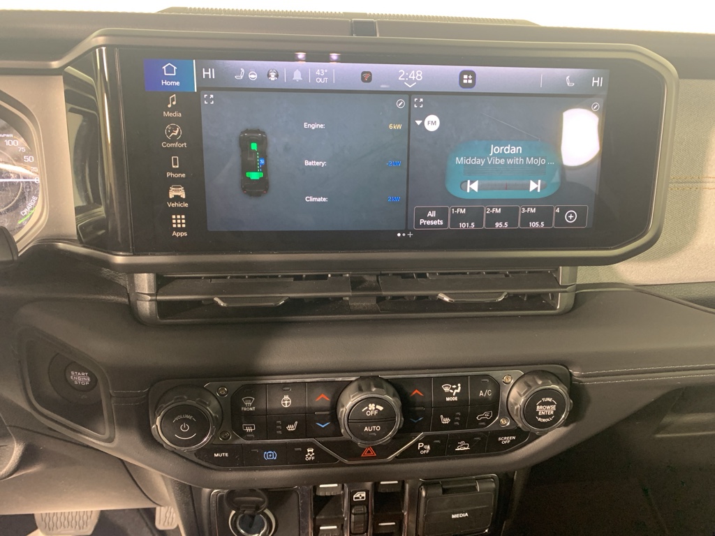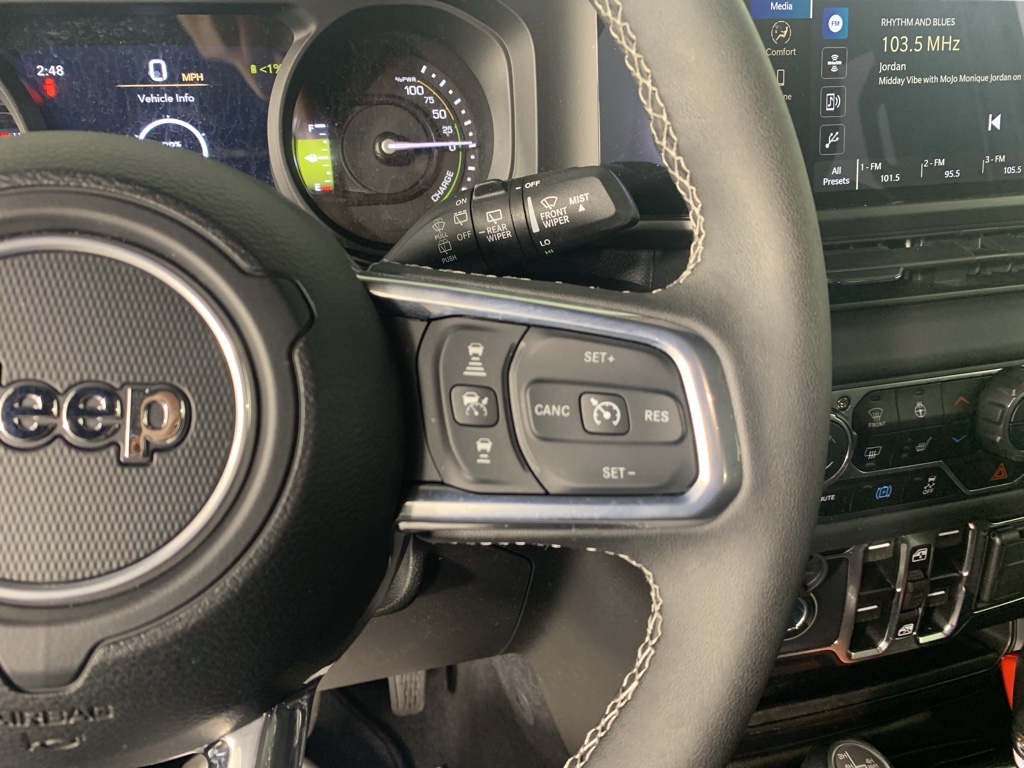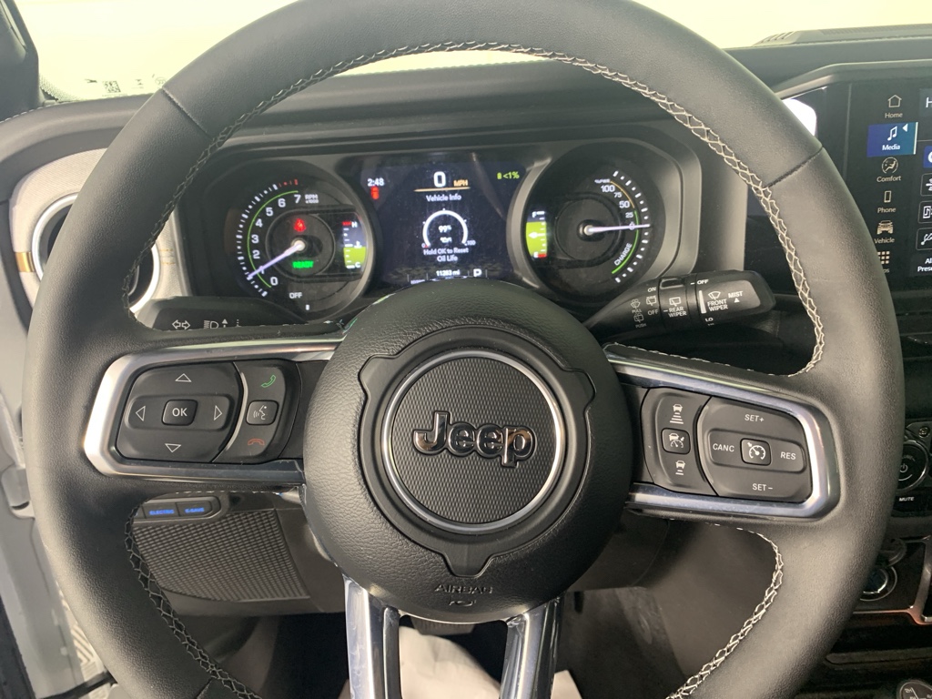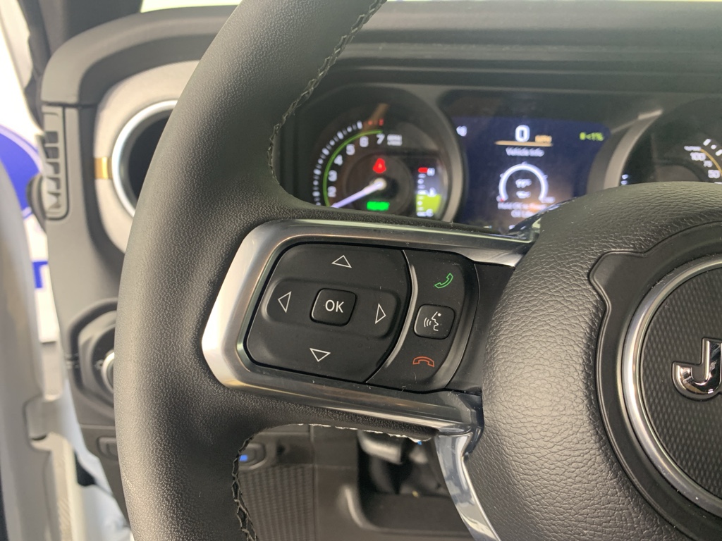 Carry lots of cargo while your passengers are comfortable. This 1/2 ton suv has four wheel drive capabilities. The vehicle has auto-adjust speed for safe following. This unit comes equipped with Android Auto for seamless smartphone integration on the road. This model offers Apple CarPlay for seamless connectivity. This model keeps you comfortable with Auto Climate. The vehicle has an automatic transmission. See what's behind you with the back up camera on it. This model is a manufacturer certified pre-owned vehicle. Maintaining a stable interior temperature in the Jeep Wrangler 4xe is easy with the climate control system. This model features cruise control for long trips. The Electronic Stability Control will keep you on your intended path. The vehicle has a 4 Cyl, 2.0L high output engine. The fog lights cut through the weather so you can see what's ahead. The vehicle's Forward Collision Warning feature alerts drivers to potential front-end collisions. This Jeep Wrangler 4xe features a hands-free Bluetooth phone system. The vehicle is pure luxury with a heated steering wheel. An off-road package is equipped on this 1/2 ton suv. The rear parking assist technology on this model will put you at ease when reversing. The system alerts you as you get closer to an obstruction. Start this Jeep Wrangler 4xe from inside with remote start. This Jeep Wrangler 4xe shines with clean polished lines coated with an elegant white finish.